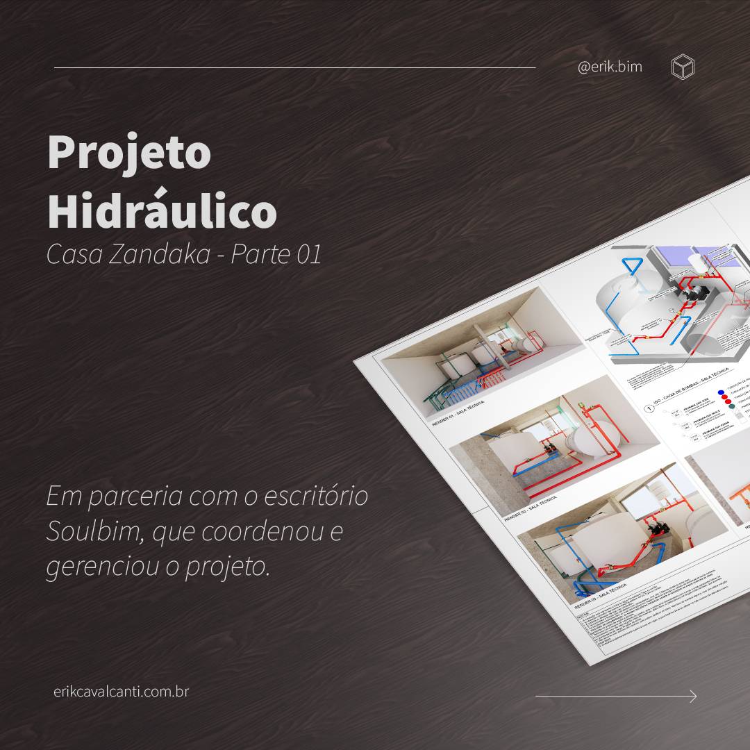 O coração da hidráulica da casa. Aqui o desafio foi contornar a estrutura extremamente robusta, de uma casa de quatro pavimentos, com grandes vãos livres e vigas de até 80 cm de largura!