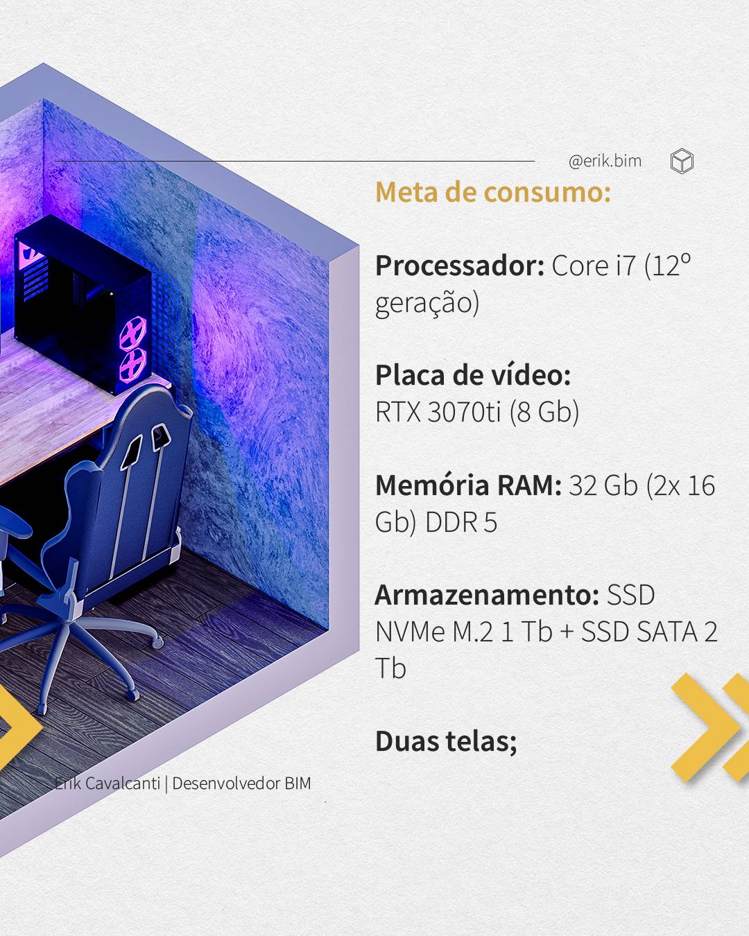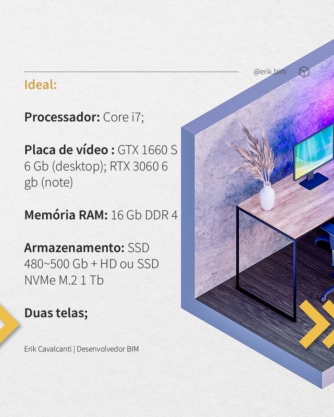 Sobre a geração dos processadores, a maioria dos setups são vendidos com a 11º geração, mas gerações anteriores também são boas para as configurações mínimas e ideias.